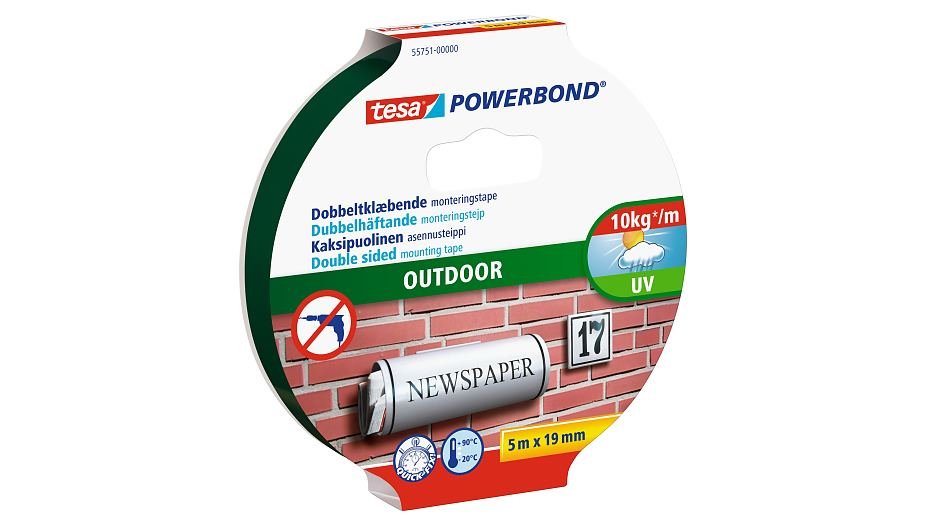 Kan bære op til 1 kg pr. 10 cm tape ved en tykkelse på maks. 10 mm på glatte og faste overflader.