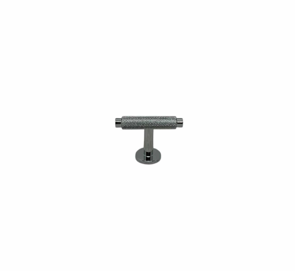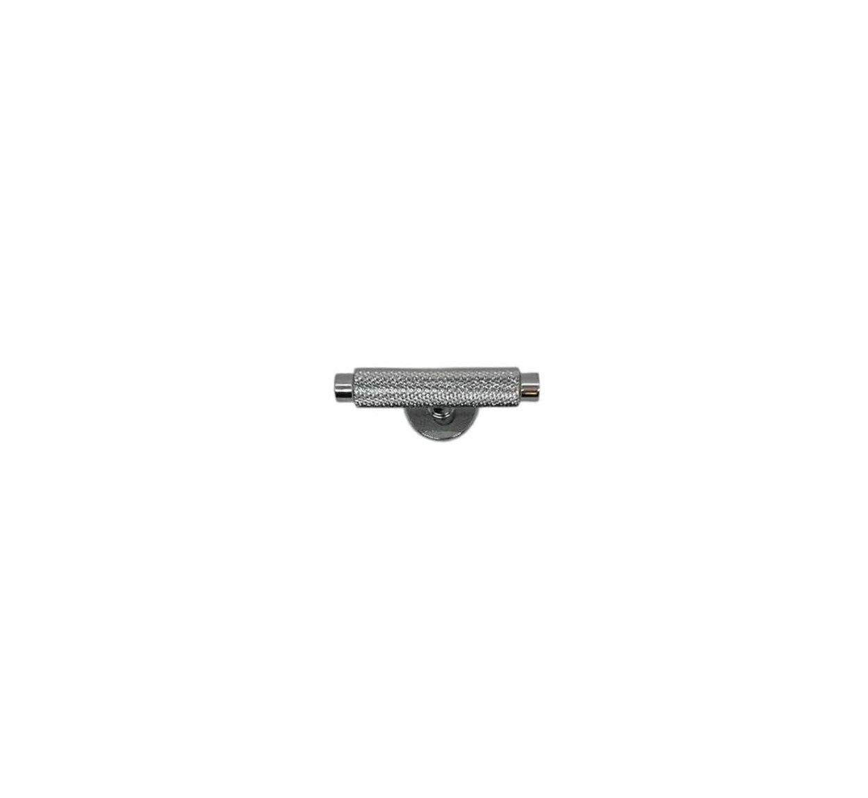 Møbelgrebet er lavet i massivt messing med en forkromet overflade med et rouletteret grebsflade.