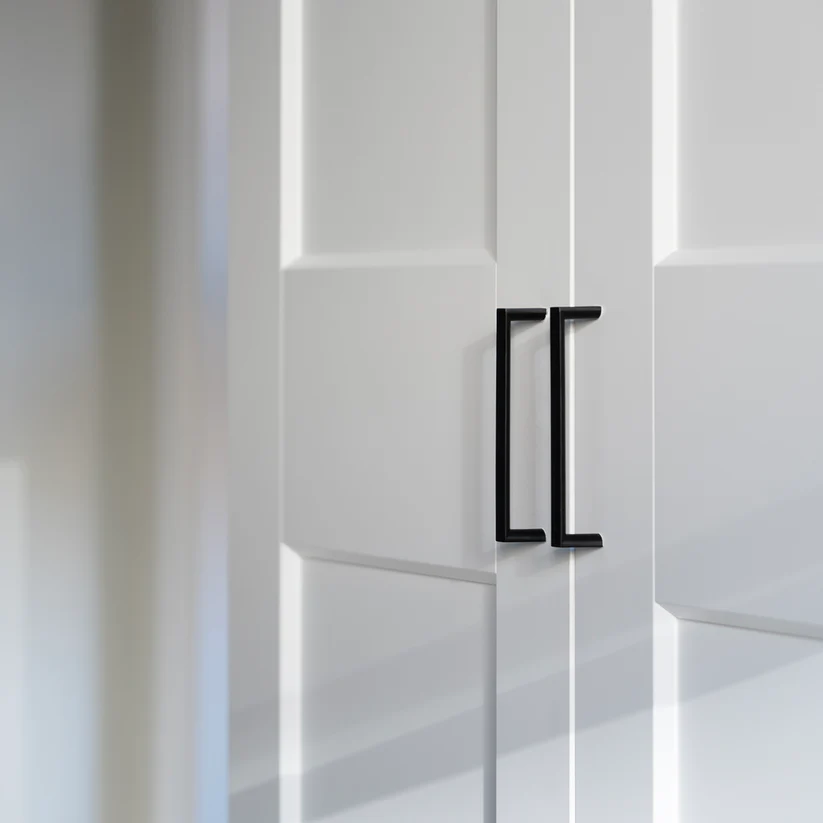 Bøjlegreb i mat sort 128 mm er et stilrent valg til dig, der ønsker at opgradere skabe, skuffer og kommoder med et moderne og enkelt udtryk. Det kantede design giver grebet et skarpt og minimalistisk look, som passer perfekt til både køkken, badeværelse, garderobe og øvrige møbler i en moderne indretning.