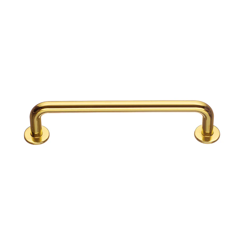 Bøjlegreb i poleret messingfinish 128 mm er et elegant valg til dig, der ønsker at tilføre skabe, skuffer og kommoder et varmt og eksklusivt udtryk. Den polerede messingfinish giver grebet en smuk glans og et luksuriøst look, mens det klassiske design med bløde former skaber et harmonisk og tidløst udtryk.