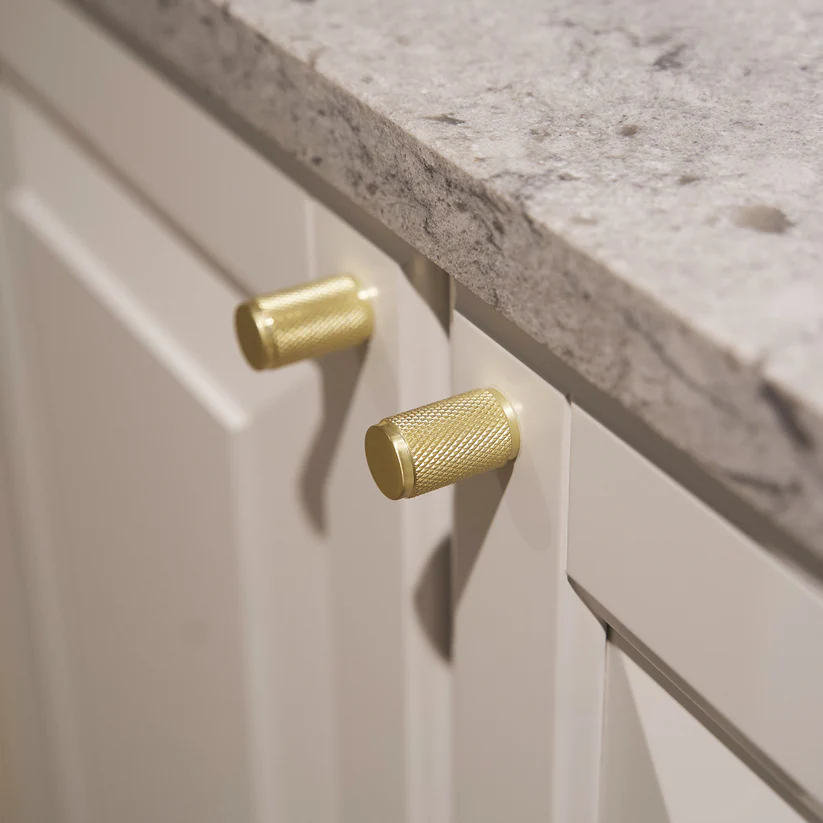 Møbelknop i børstet messingfinish med riflet greb Ø17 mm er et stilrent og eksklusivt valg til dig, der ønsker at opgradere dine skabe, skuffer og møbler med en varm og elegant detalje. Den børstede messingfinish giver en afdæmpet gylden tone, mens det riflede greb tilfører både karakter og funktionalitet.