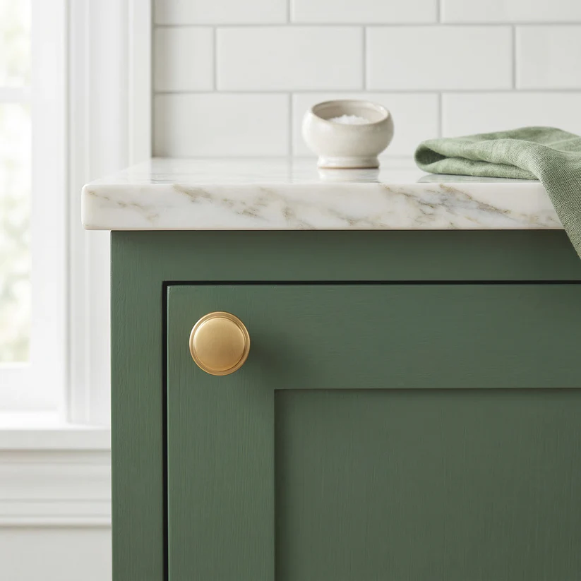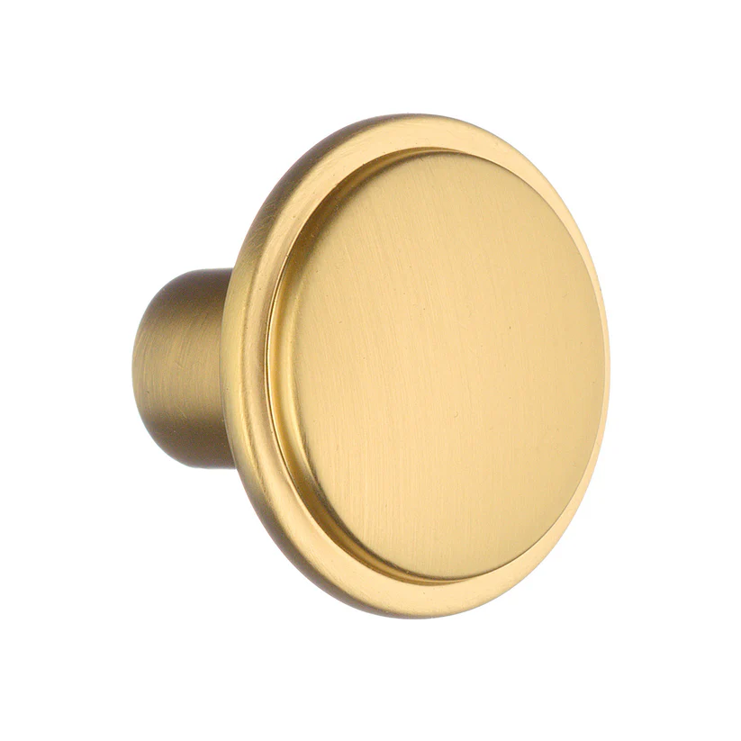 Denne runde møbelknop i børstet messingfinish i Ø30 mm har et let fladt design, som giver et elegant visuelt udtryk og samtidig ligger behageligt i hånden. Den fungerer ideelt i køkkenet, på badeværelset, i garderoben eller på kommoder, hvor små detaljer kan gøre en stor forskel. Den børstede messingfinish gør knoppen nem at kombinere med både lyse og mørke fronter og tilfører en varm og elegant detalje til indretningen.