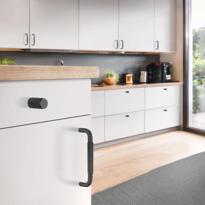 Denne møbelknop i mat sort med riflet greb er ideel til køkken, badeværelse, garderobe og kommoder, hvor du ønsker et gennemført og eksklusivt look. Den riflede struktur giver et behageligt og sikkert greb i daglig brug og gør knoppen både dekorativ og praktisk.