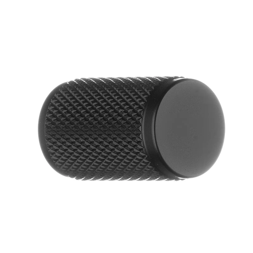 Møbelknop i mat sort med riflet greb Ø17 mm. BB40009